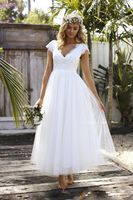 Skip to main content. Buy wedding dresses online at dreamydress shop. Tea length wedding dresses often give brides a vintage style and feature a skirt that falls below the knee and above the ankle.