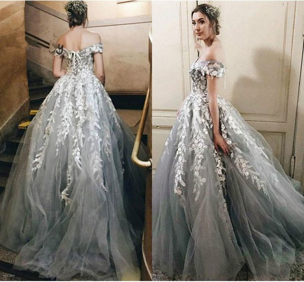 Discount Vintage Gray Wedding Dresses Ball Gown Off Shoulder Boho
