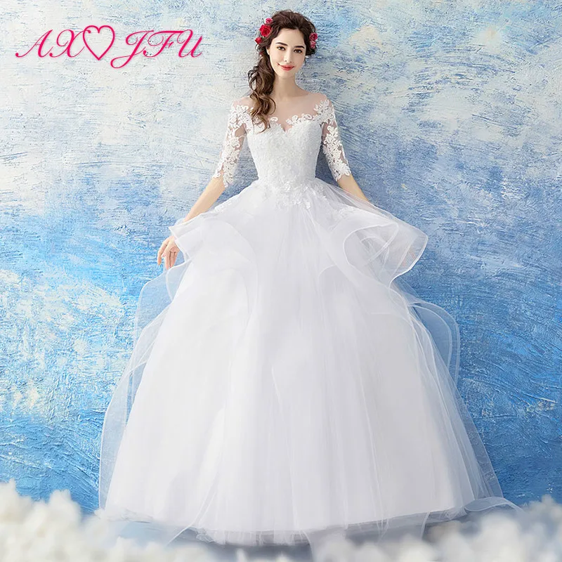 Axjfu European Princess Beading Flower Wedding Dress Fairy Lovely