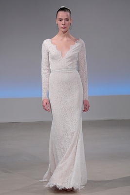 Pronovias Telesto Backless Long Sleeve Lace Sheath Wedding Dress