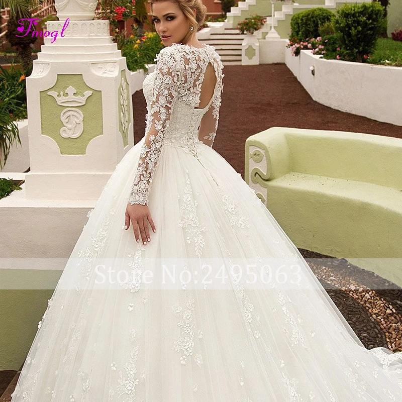 Fsuzwel New Charming Appliques Long Sleeves A Line Wedding Dresses