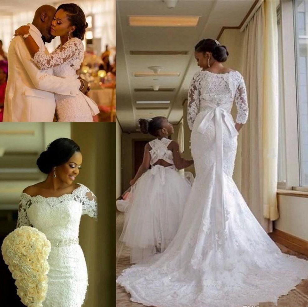 2020 Mermaid Long Sleeves Lace Wedding Dresses Plus Size Nigerian