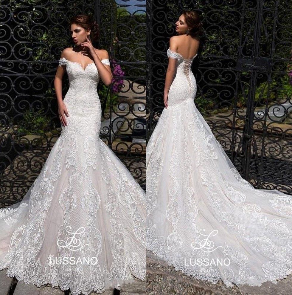 Off The Shoulder Full Lace Mermaid Wedding Dresses 2020 Tulle