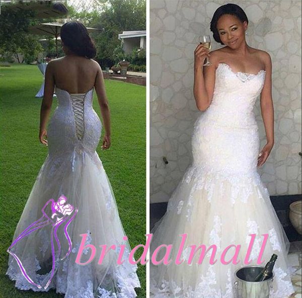 Elegant 2019 African Lace Mermaid Wedding Dresses Plus Size Lace
