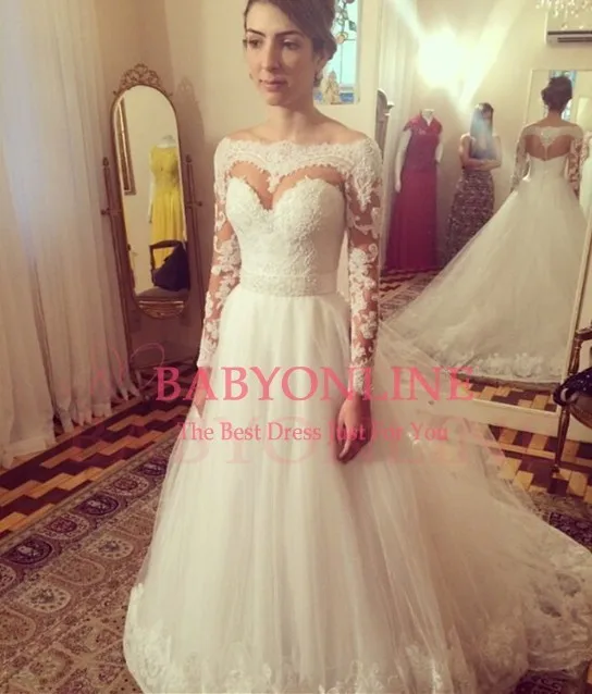White Wedding Dresses Long Sleeves Wedding Gown Lace Wedding Gowns