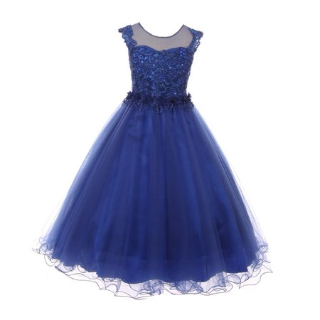 Royal Blue Princess Flower Girl Dress Lace Tulle Sleeveless With