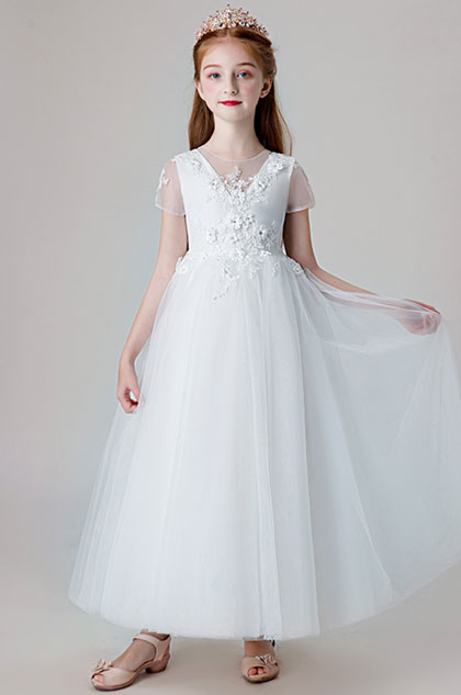Trumpet Mermaid Short Sleeve Kids Prom Dress For Girls Ch0117