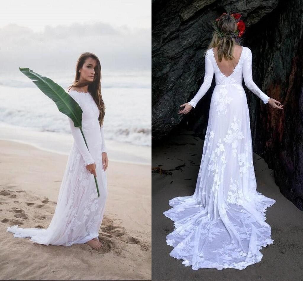 2019 Simple Summer Bohemian Wedding Dresses Lace Long Sleeves Sexy