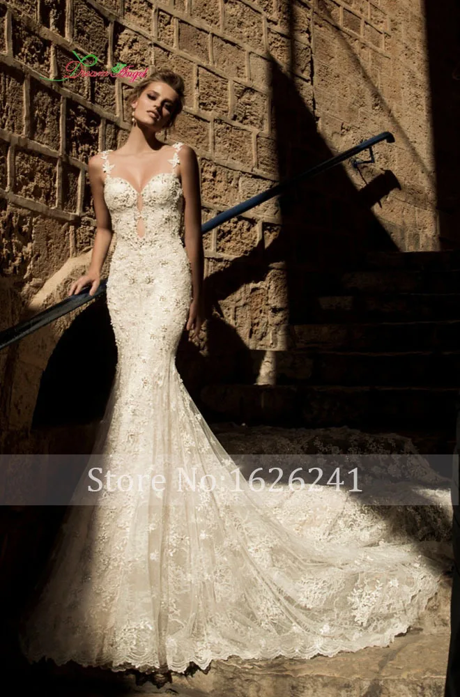 Dream Angel Beaded Lace Mermaid Wedding Dress 2017 Romantic