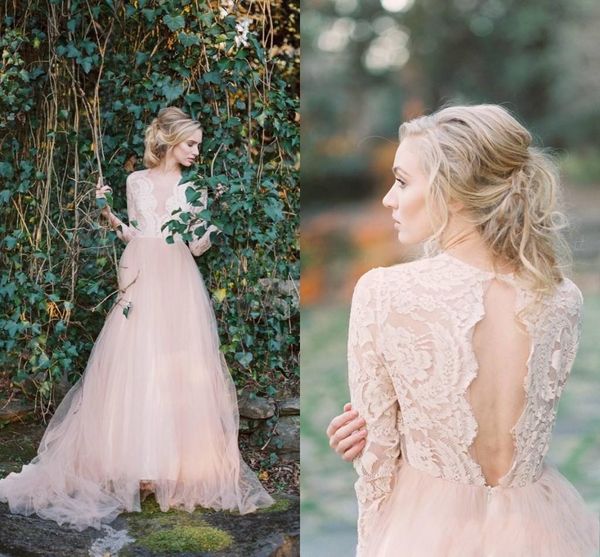 Discount Bohemian Wedding Dresses A Line V Neck Long Sleeves