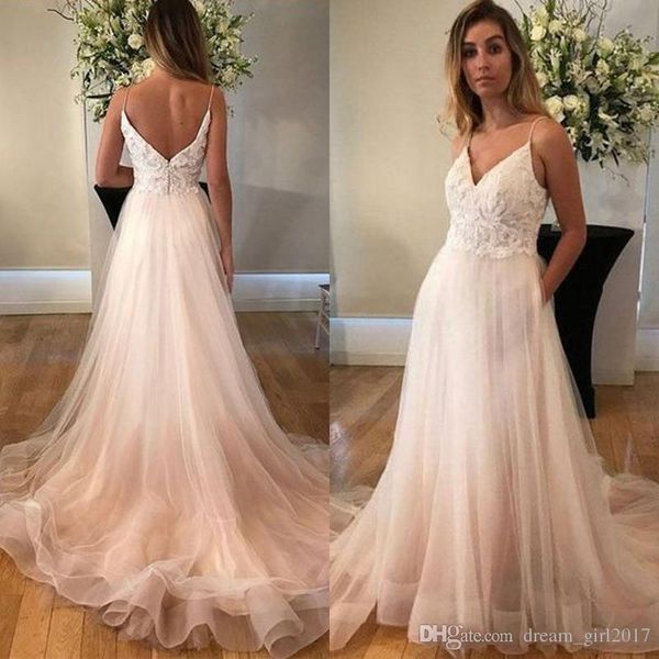 Discount 2019 Spaghetti Straps Wedding Dresses Lace Appliques Top