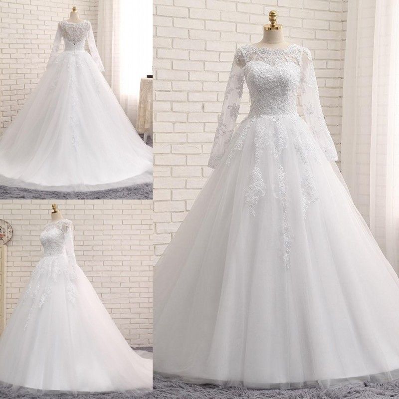 Discount Real Images Long Sleeves Beach Wedding Dresses Bateau