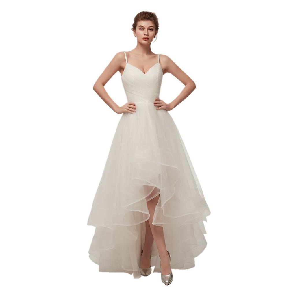 Buy Unique White Tulle Short Front Long Back Wedding Dress Knee