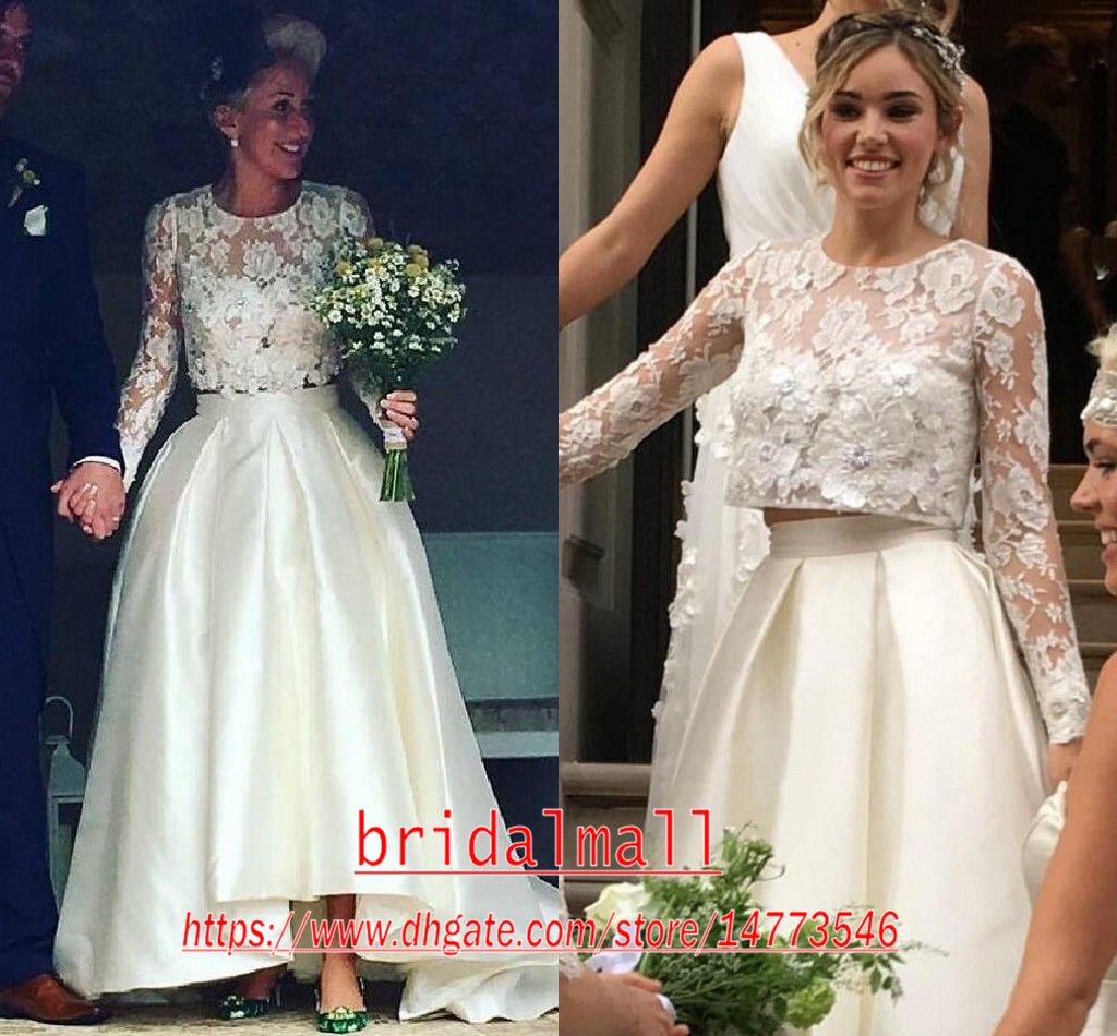 Discount New 2020 Short Front Long Back Wedding Dresses Two Pieces
