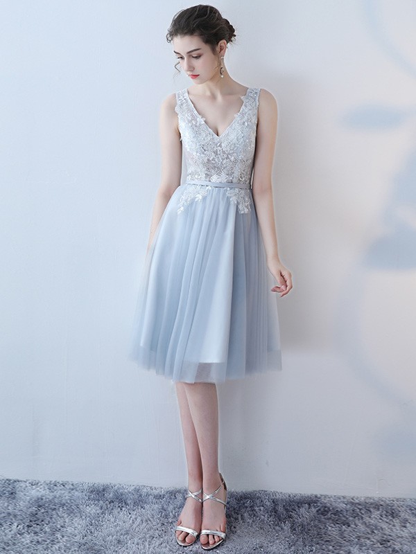 Gray Lace Top Bridesmaid Qipao Cheongsam Dress With Tulle Skirt