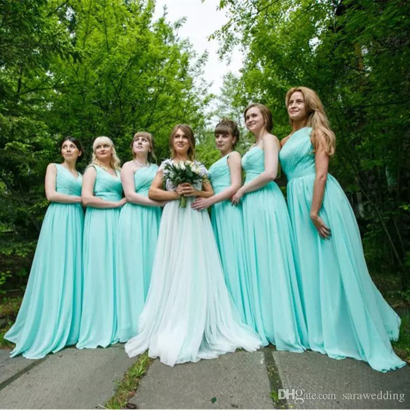 Pleated Chiffon Long Bridesmaid Dresses Lace Up 2018 Lake Blue