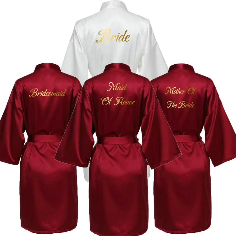 Yuxinbridal 2019 New Burgundy Satin Silk Bride Robe Wedding Gift