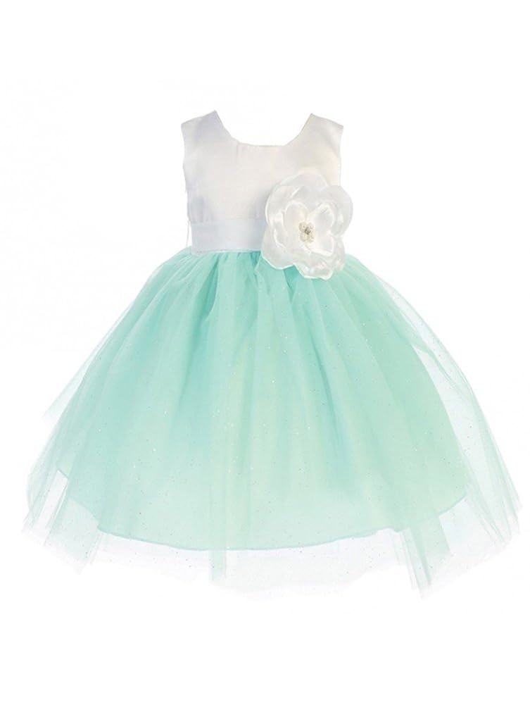 Amazon Com Big Girls Aqua White Floral Accented Glitter Tulle
