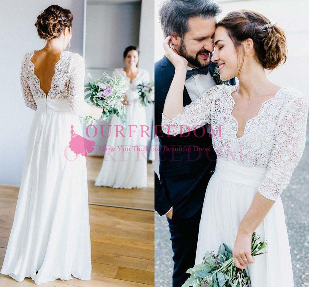 Discount 2019 Bohemian Style V Neck A Line Wedding Dresses Lace