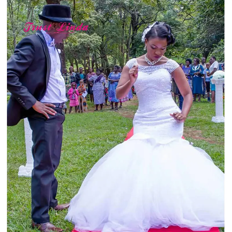 Mother Of The Bride Gown Cap Sleeves Illusion Neck African Mermaid