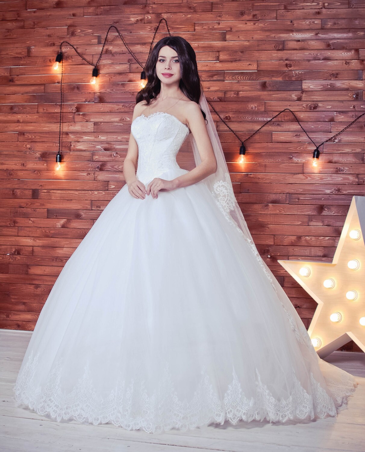 Beautiful White Tulle Ball Gown Wedding Dress Court Train Lace