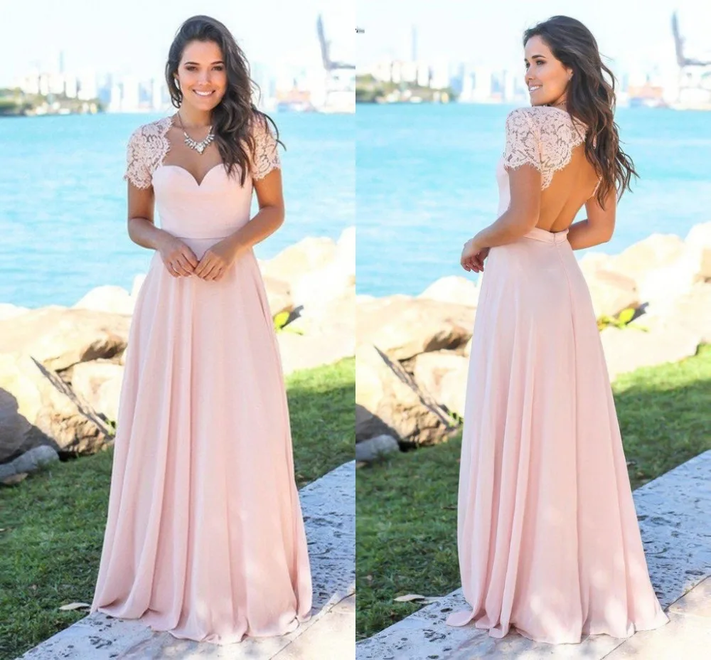 2019 Pink Bridesmaid Dresses Long Sweetheart Backless Lace Top