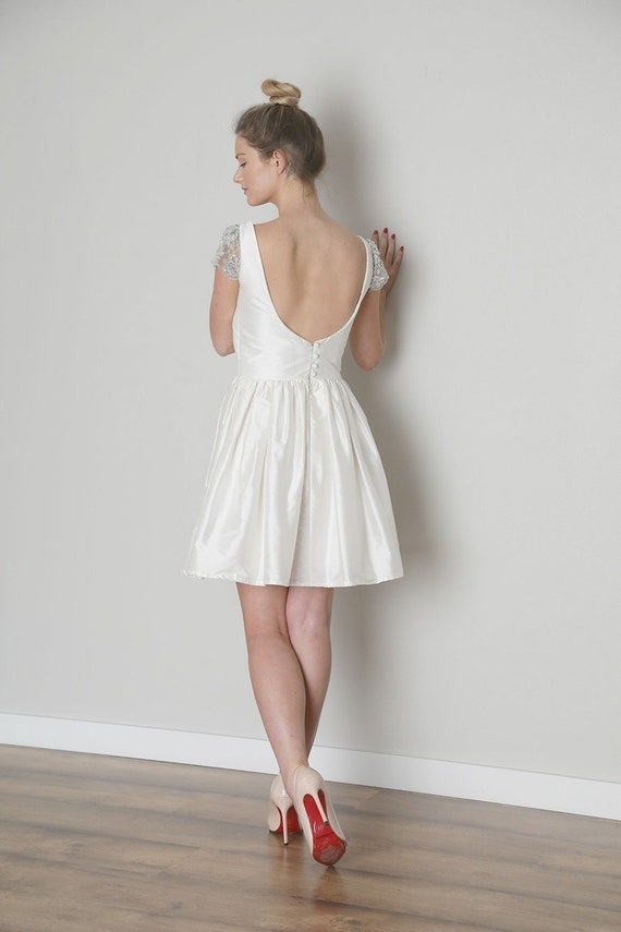 Backless Short Wedding Dress Tea Length Bateau Neckline Etsy