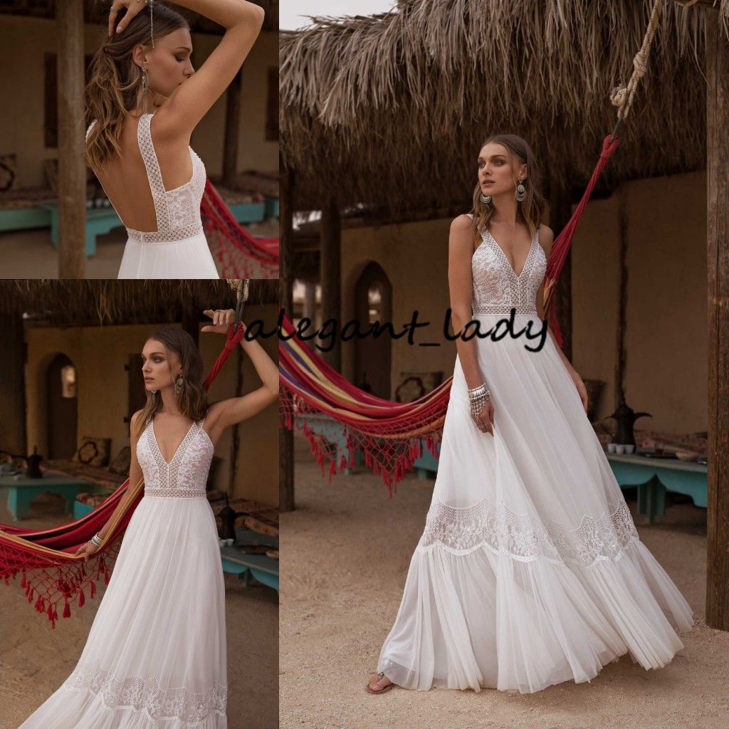 Discount 2019 Bohemian Wedding Dresses Sexy V Neck Backless