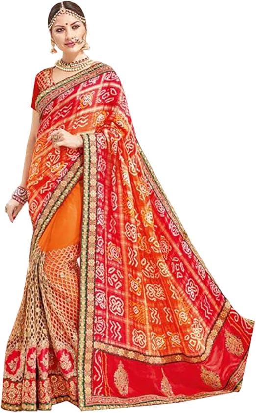 Indian Bridal Hot Red Handwork Banarasi Silk Saree Party Saree