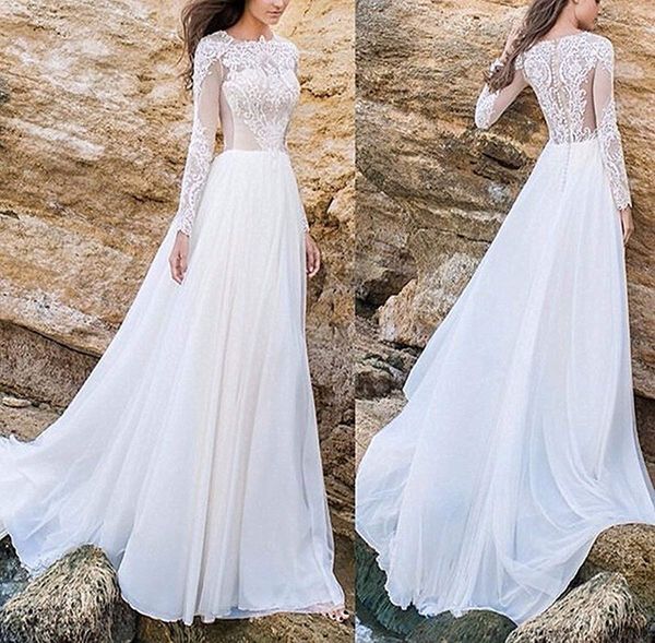 Wedding Dresses Hot Selling Long Lace Sleeve Sexy Jewel Beautiful