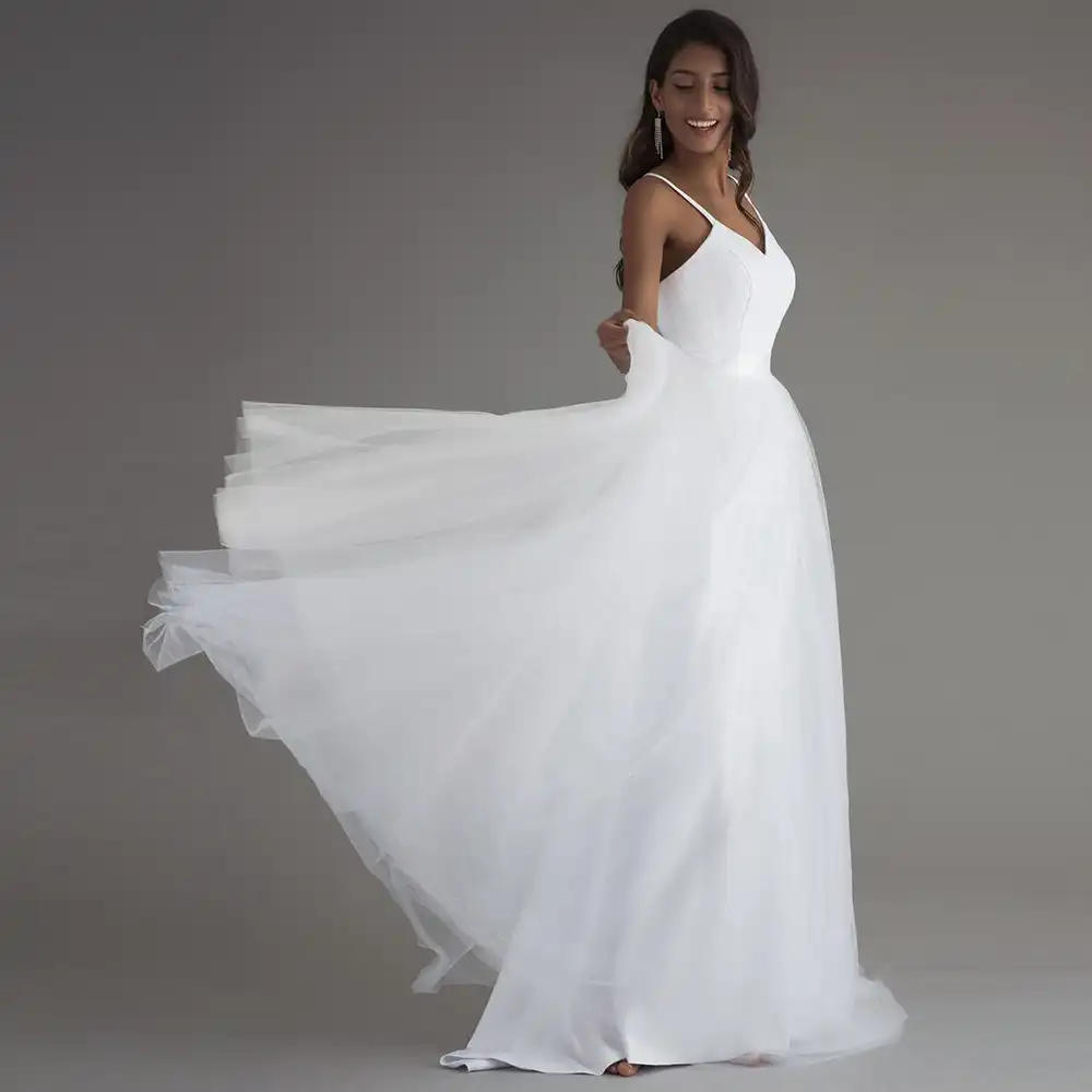 Booma Simple Cheap Wedding Dresses Boho Bridal Dress 2020 White
