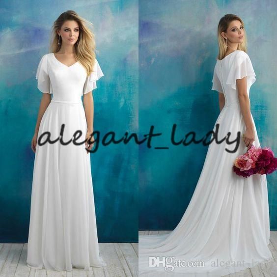 Discount Modest Chiffon Beach Wedding Dresses With Sleeves Simple