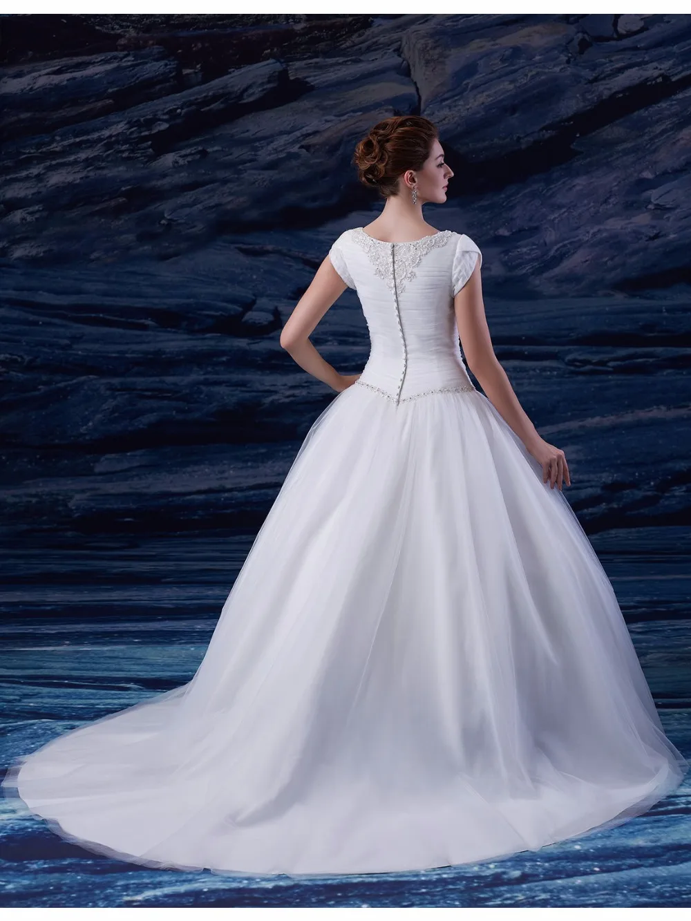 2019 Ball Gown Long Modest Wedding Dresses With Cap Sleeves Beaded