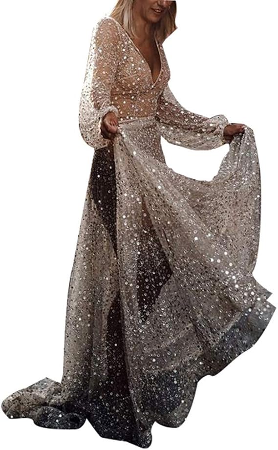 Womens Casual Dresses Women Summer Sexy Lace Sequin Long Sleeve