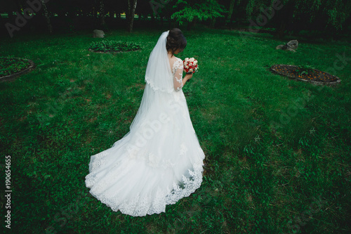 Sophisticated White Lace Wedding Dress With Long Train Tulle