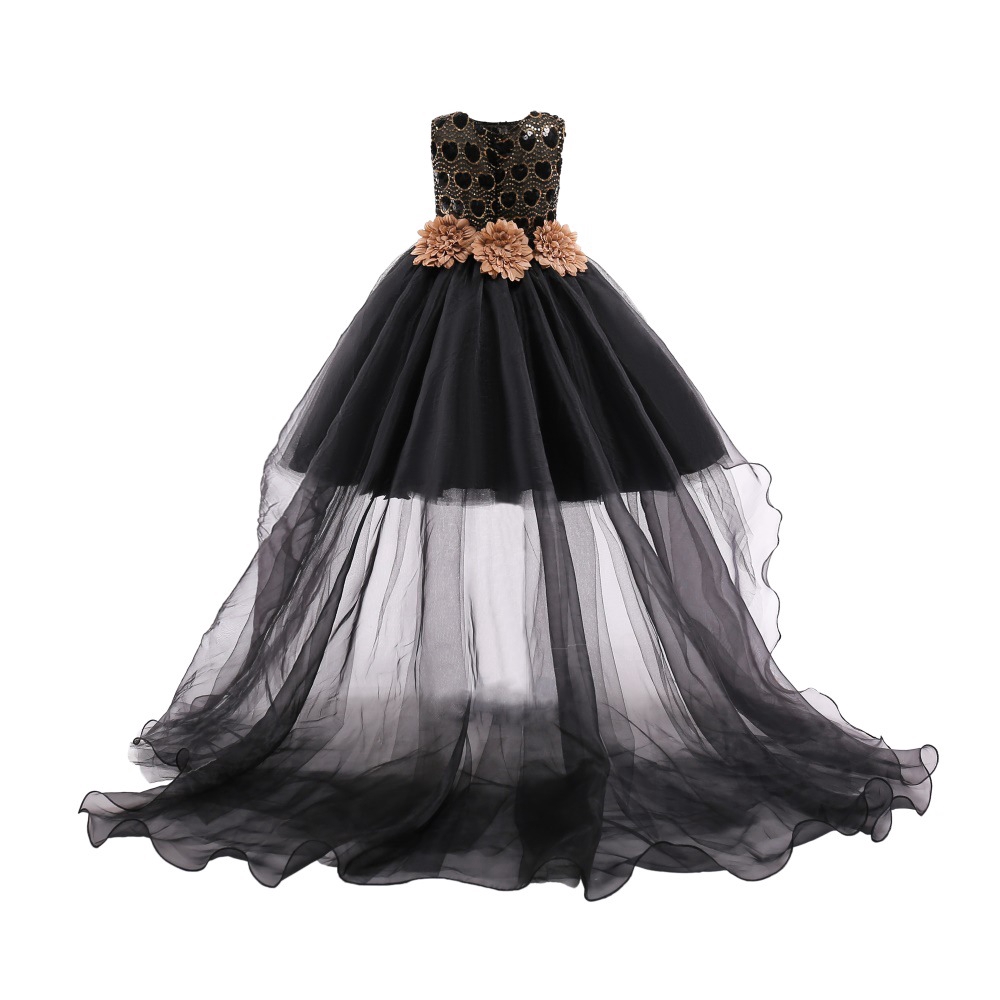 Black Kids Elegant Bridesmaid Wedding Flower Girl Dress For Party