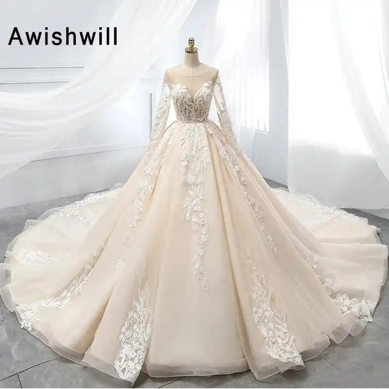 Luxury Gorgeous Champagne See Through Wedding Dresses 2020 Ball
