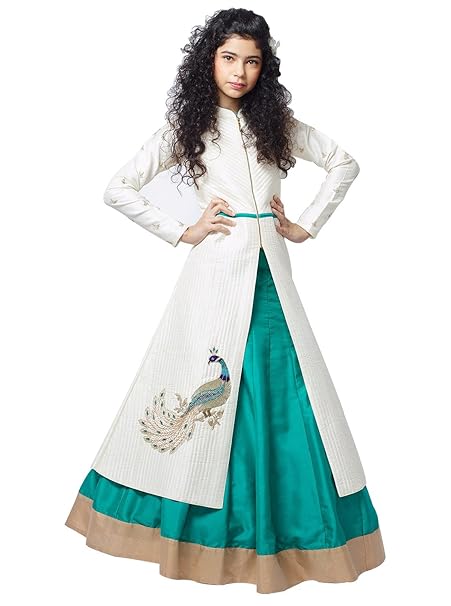 Buy Cartyshop Girl S Off White Foam Work Embrodiery Banglori Silk