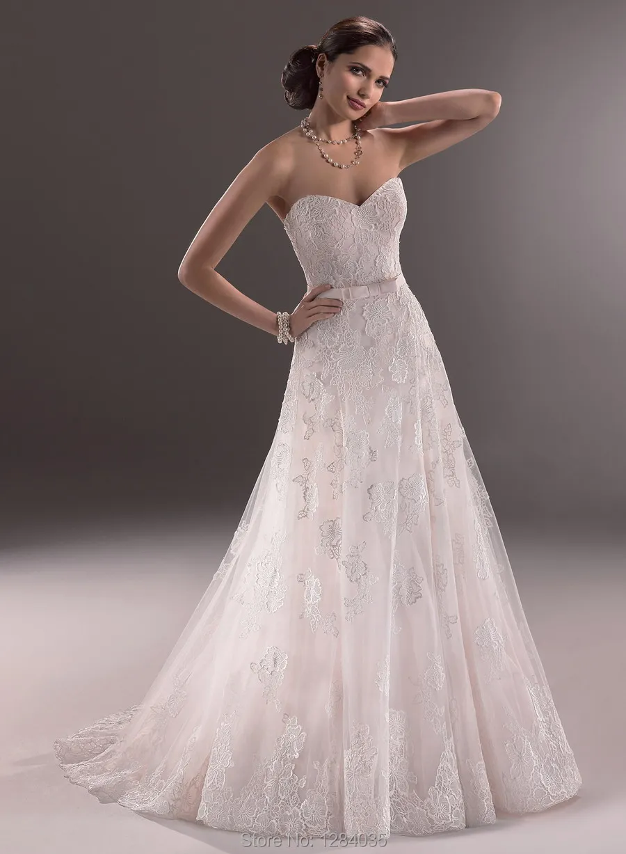 Popular Light Pink Wedding Dress Country Lace Wedding Dress A Line
