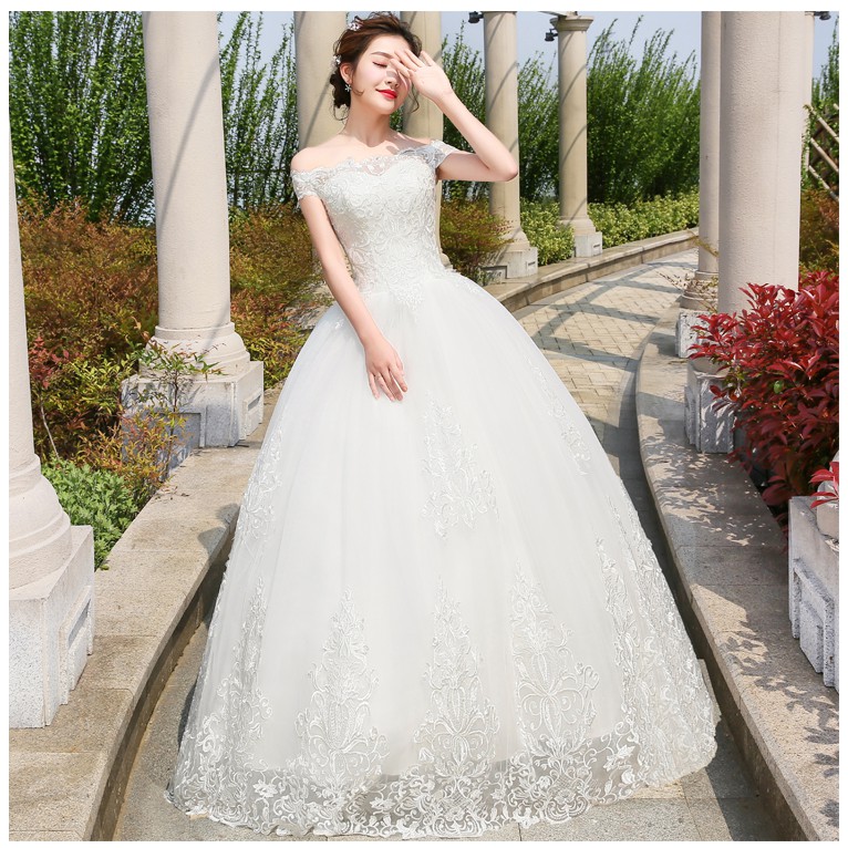 Off Shoulder Lace Slim Fit Wedding Bridal Gown Evening Dress