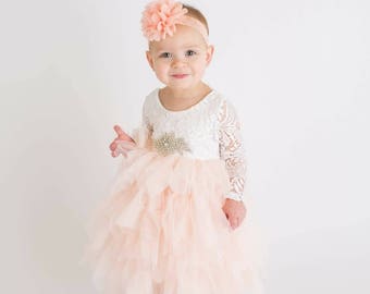 Long sleeve baby pink wedding dress. Flower girl dress espana flower girl dresses blush flower girl dress child dress baby dress light pink dress wedding dress milabridal. When its cold outside turn up the heat in a cute and cosy long sleeve jumper dress just add over the knee boots for that perfect off duty look. Beautiful 3pcs ivory lace tulle baptism dress long sleeve baby dress matching bonnet lace bow baby headband ivorybydesign.