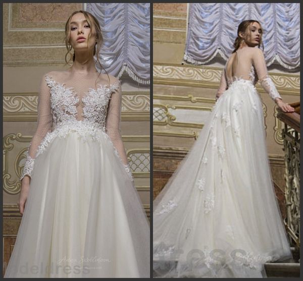 Illusion Sexy Lace Wedding Dresses 2018 Sheer Long Sleeve Open