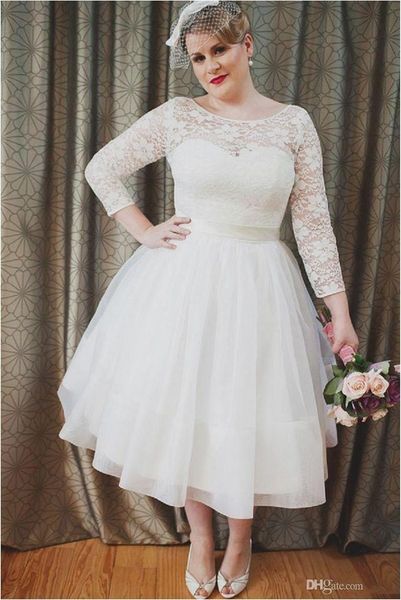 Discount Scoop Neck Long Sleeves Wedding Gowns Short Plus Size