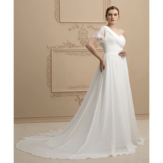 Shop A Line Princess One Shoulder Court Train Chiffon Sheer