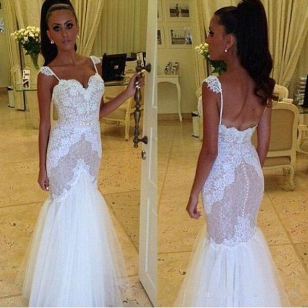 2019 New Glamorous Lace Mermaid Wedding Dresses Spaghetti Straps
