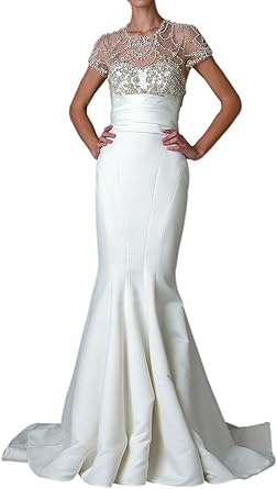 Amazon Com Women S Sparkly Mermaid Short Sleeve Wedding Dress