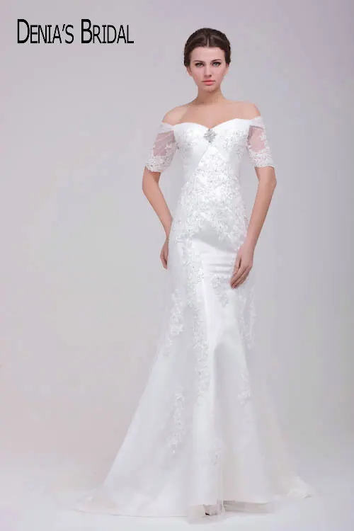 Real Photos Sweetheart Mermaid Wedding Dresses With Short Sleeves