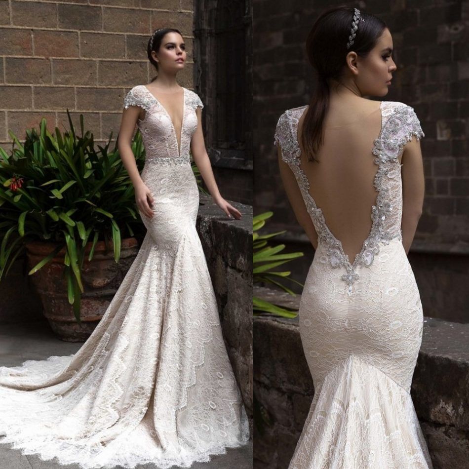 Milla Nova 2019 Short Sleeves Mermaid Wedding Dresses Deep V Neck
