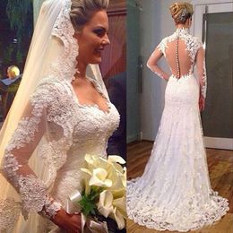 New Elegant 2019 Mermaid Wedding Dresses High Collar Long Sleeve