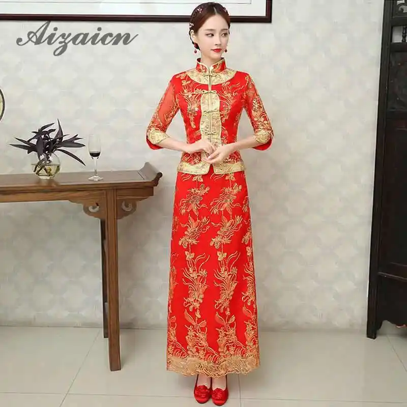 Red Bride Cheongsam Grain Fashion Women Embroidery Modern Chinese